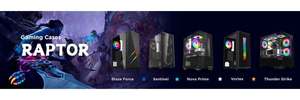 GABINETE RAPTOR VORTEX TG MID-TOWER RGB FAN X1 + LED FRONTAL